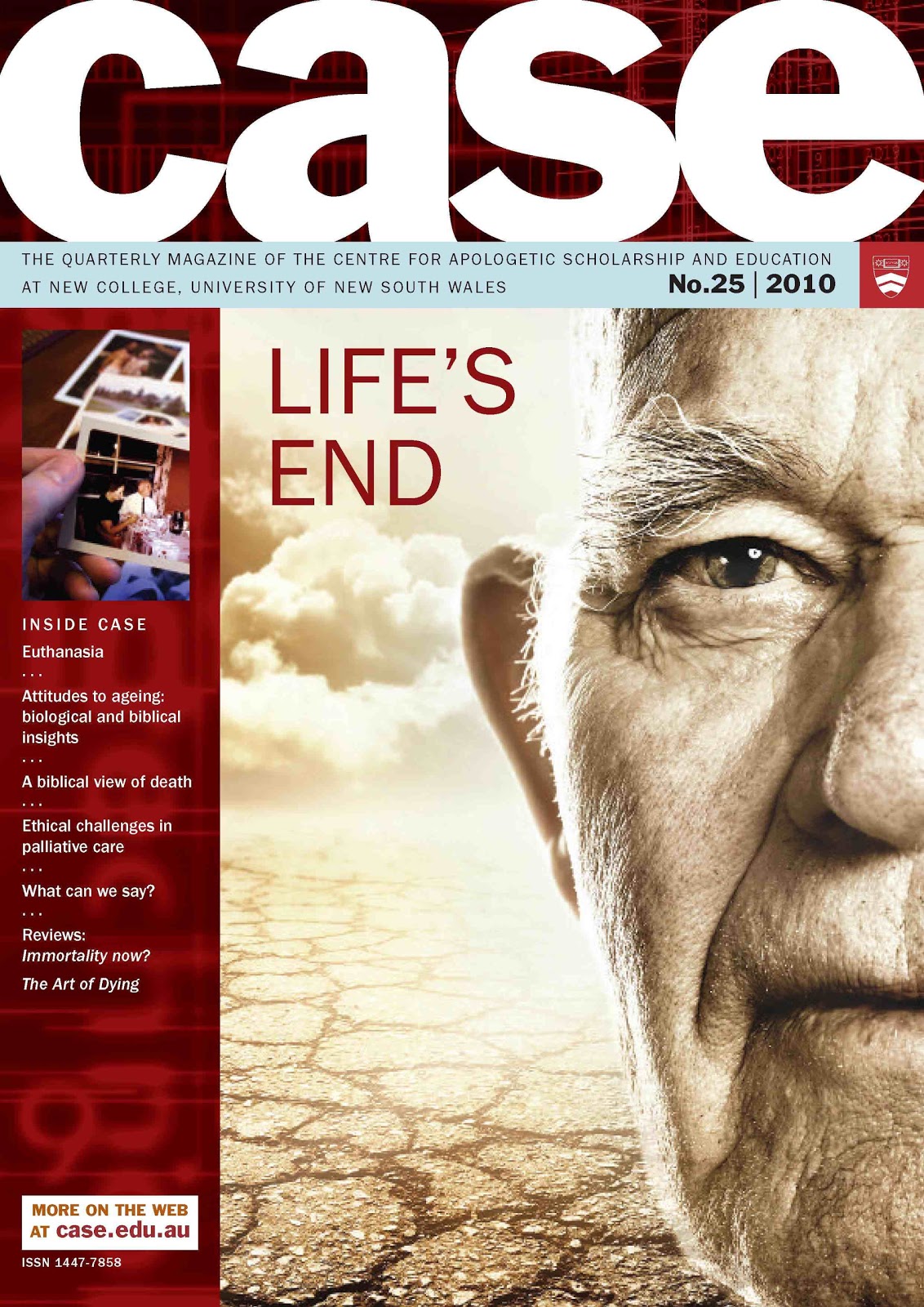 Case Magazine has the theme 'Life's End' and had its genesis in the 2010 CASE conference, 'Christian perspectives on the end of life'. In this issue you can read the papers of all speakers from the conference. The contributions include papers by Dr Megan Best, Dr Russell Clarke, Rev Rod Benson, Kate Bradford and Dr Frank Brennan.